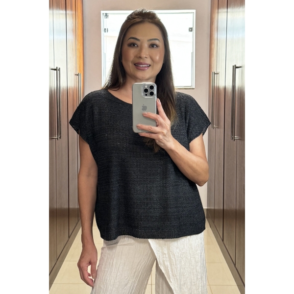 Blusa ampla shine - Ref. 23004 - Preto com jaguar