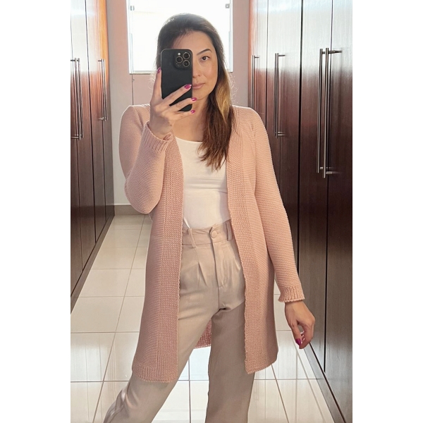 Maxi casaco links liso - Ref. 02125 - Rosa